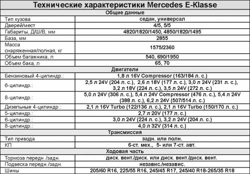 Как и прежде, E-класс представлен двумя модификациями: наиболее почитаемым отечественными автомобилистами 4-дверным седаном и редким на наших дорогах 5-дверным универсалом. В ходе производства модель дважды подвергалась модернизации – в 2006 году, когда, кроме внесения внешних изменений, «вылечили» многие «детские болезни», и в 2008-м (легкий рестайлинг экстерьера).