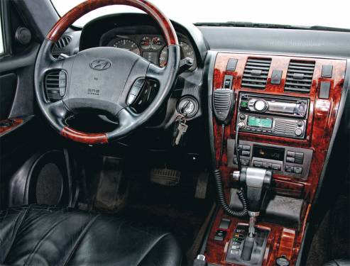 Совсем другие эмоции вызывает салон. Внутри не чувствуешь себя ущемленным в правах владельцем дешевой машины, если сравнивать с внедорожниками японских или американских производителей тех лет. В Terracan есть намек на роскошь. Черный кожаный салон за 9 лет эксплуатации прекрасно сохранился. Кожа мягкая, без трещин и следов старения. Пластиковые вставки под дерево в салоне машины не портят ощущения, а лишь подчеркивают дороговизну комплектации.