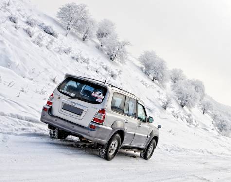 Полноприводная трансмиссия Active Torque Transfer (ATT) с автоматически подключаемой передней осью позволяет не особо задумываться о том, по дороге какого качества и какой сложности в настоящее время ты едешь. А для условий тяжелого бездорожья в Terracan предусмотрены самоблокирующийся дифференциал в заднем мосту и пониженная передача, включаемая поворотом небольшой шайбочки, расположенной на тоннеле между передними сиденьями.