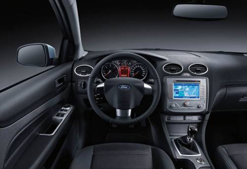Интерьер Ford Focus также претерпел рестайлинг в 2007 году. Хотя в отличие от внешнего вида, его не стали перекраивать кардинально, поэтому он прекрасно узнаваем. Расположение приборов в щитке, органов управления – все то же. Даже фирменные дефлекторы-овальчики на своих местах. Вместе с тем салон выглядит значительно приятнее. Щиток приборов стал более рельефным, этот эффект создает главным образом серебристая вставка между спидометром и тахометром, а также спрятанные в колодцы циферблаты панели приборов. Информационный дисплей расположен по центру передней панели, с обеих сторон от него – органы управления климатом. На самых дорогих модификациях можно встретить систему доступа в автомобиль без ключа, модуль для подключения с портом USB, гнездами для дополнительного оборудования и iPod. На центральной панели таких экземпляров часто красуется розетка на 230 В, пригодная для приборов мощностью до 150 Вт. Причем, несмотря на «демократичность» модели, эта опция Ford Focus стала новинкой в гольф-классе.