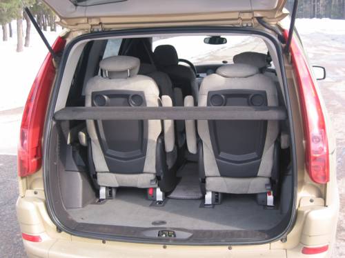 Если убрать все сиденья, кроме двух передних, получится ровный грузовой отсек объемом 2948 литров. В стандартном варианте объем багажного отделения 480 литров. В багажнике также имеется специальная багажная сетка. Она довольно прочная, и если повесить ее между задними стойками кузова, получается вместительный “гамак”, который, кстати, пригодится и при пустом багажнике, в нем можно хранить мелкие вещи, чтобы они не катались по багажнику или салону. В целом композиция интерьера весьма гармонична.