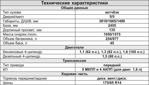 Гамма силовых агрегатов включала в себя четыре двигателя мощностью от 62 до 105 л.с. Самый скромный мотор – бензиновый 1,1-литровый, мощностью 62 л.с. После рестайлинга в 2005 году мощность этого двигателя выросла до 66 л.с.
