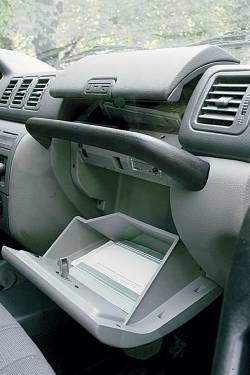 Кресла комфортны: сидишь высоко, смотришь далеко, диапазон регулировок по горизонтали и углу наклона спинки (по вертикали – нет) удовлетворит любого. Но есть, конечно, и небольшие недочеты. Водительское сиденье смещено влево, дверь подпирает, боковая поддержка практически отсутствует, да и регулировать спинку нелегко: вращающаяся рукоятка труднодоступна. Между передними сиденьями есть бокс для разной мелочи, если бы его сделали немного повыше, он бы еще и подлокотником послужил. Наконец-то исчез частокол рычагов: на тоннеле два небольших удобных рычага с крупными набалдашниками, ручник горизонтальный.