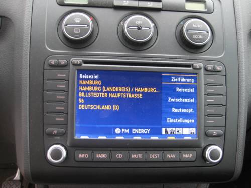 Три ровных кругляша климат-контроля находятся на том же уровне, что и логотип на руле. На горизонтальных спицах последнего симметрично расположились по две пары одинаковых маленьких кнопочек, отвечающих за управление бортовым компьютером и музыкой. Самая главная деталь интерьера – дисплей навигации, который расположен прямо под рукоятками климат-контроля, и с ним постоянно приходится общаться в поездках по незнакомым закоулкам Германии и Европы. Вещь, оказалась, что называется, на каждый день. Вместе с блоком навигации у «Турана» завязана штатная аудиосистема, поскольку на цветном дисплее как нельзя лучше отражаются частоты радиоволн и номера аудиотреков с компакт-дисков.
