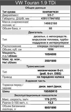 Как и положено, о работе дизеля можно догадаться только по иной шкале тахометра да характерным звукам в момент запуска. В остальном – песня! Резвый старт, быстрые отклики на перемещения электронной педали акселератора. “Туран” мигом превращается в легкий и подвижный автомобиль, позволяющий играючи укладывать стрелку спидометра на двухсоткилометровую отметку. Здесь и шестая передача весьма кстати: она позволяет не только экономить топливо, но и заметно снижает внутренний шум при движении с высокими скоростями. С прибавкой мощности и крутящего момента “Туран” становится удобным не только для пассажиров, но и для водителя.