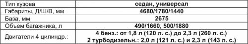 За исключением нынешнего поколения Mondeo, все предшественники считались типично семейными автомобилями. Впрочем, этот Mondeo отличается лучшими ходовыми качествами и управляемостью, что делает его золотой серединой между откровенно драйверскими Accord, Mazda6 и утилитарным Primera. Порадует потенциальных покупателей также богатство оснащения многих Mondeo. И это при более демократичной цене! Кроме седана и универсала, существует практичная версия с кузовом хетчбэк. Основные замечания – слабоватая шумоизоляция, неважная обзорность назад, маленький проем багажника у седана и чувствительность моторов к качеству топлива.