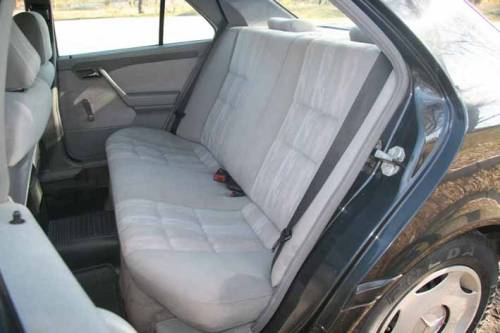 На заднем диване трое пассажиров, в принципе, поместятся – места хватит, подушка и спинка почти ровные, вот только подголовника всего два, да и тоннель пола довольно широкий. Тому, кто окажется посредине, будет немного неуютно. Багажник неплохой, по сравнению с 190-м даже удобный – крышка открывается от бампера. Однако нескладывающиеся спинки заднего сиденья и объем багажника чуть более 400 литров не позволят перевезти крупный груз.