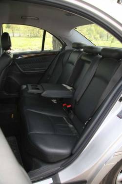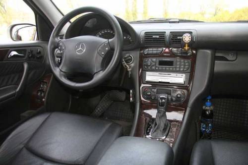 Интерьер компактного С200, очень похожий на салон S-класса, простором не поражает, зато создает уютную атмосферу. Кожаная отделка отлично гармонирует с мягким пластиком панелей, центральная консоль и отделка дверей облагорожены темным деревом, причем настоящим. Передние кресла с ненавязчивой боковой поддержкой можно и поднять, и наклонить как душе угодно с помощью многочисленных электрорегулировок, блок управления водительского сиденья с памятью на три положения находится на двери, а пассажирского – на боковине сиденья. Обшитая кожей баранка тоже регулируется с помощью сервоприводов в двух направлениях, на ее спицах расположены клавиши управления магнитолой и бортовым компьютером.