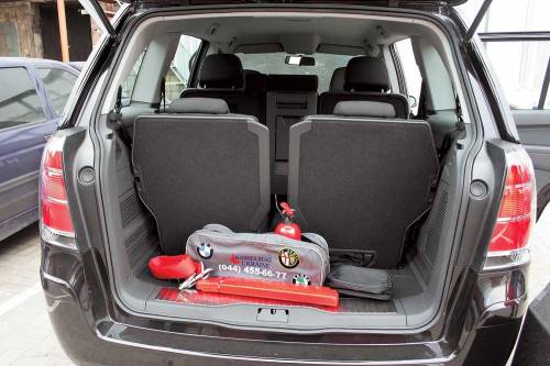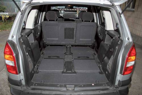 При разложенных сиденьях третьего ряда в 7-местной конфигурации салона багажник у Zafira чисто условный – всего 150 л