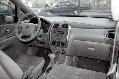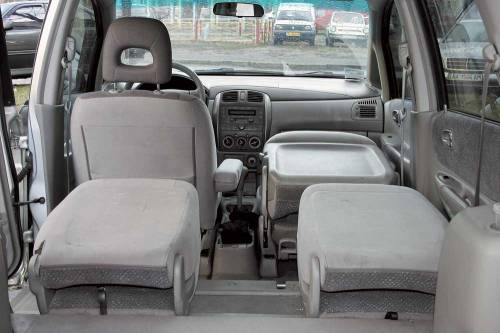 Особых нареканий эргономика салона Premacy не вызывает. Трансформация внутреннего пространства не представляет сложности – съемные задние сиденья достаточно легкие (вес каждого – около 12 кг). Хотя есть претензии к обзорности: из-за покатого капота не просматривается передний габарит машины, а передние стойки при боковых маневрах перекрывают видимость, что характерно и для Zafira. Не самая лучшая у «японки» шумоизоляция задних арок – при движении в салоне слышен шум колес.