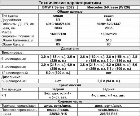 Приличный комфорт, богатый «фарш» и невысокая рыночная стоимость привлекают покупателей к «семерке» Е32 и S-классу (W126), но... Ресурс многих их узлов и агрегатов уже истек – они не простаивали в гаражах и накатали большой километраж. На замену изношенных деталей потребуются немалые деньги – несмотря на возраст машин, стоимость ремонта и обслуживания соответствует их высокому классу. Все лимузины оснащены «прожорливыми» многолитровыми двигателями, беспощадно пожирающими от 14 до 20 л топлива на 100 км в городе. Немного сэкономить удастся, лишь эксплуатируя их на газе. Так стоит ли связываться с престарелой «элитой»? Вряд ли. За эти деньги лучше купить автомобиль ниже классом, но «посвежее» и в хорошей комплектации, который еще не выработал свой остаточный ресурс.