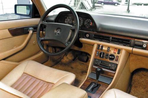 По оформлению салон W126 с простеньким торпедо проигрывает конкуренту. Отчасти это компенсирует богатая комплектация. Большая баранка и мягкие кресла-диваны не провоцируют на динамичную езду. Кнопки электроприводов стеклоподъемников и регулировки зеркал находятся под подлокотником, и пользоваться ими неудобно