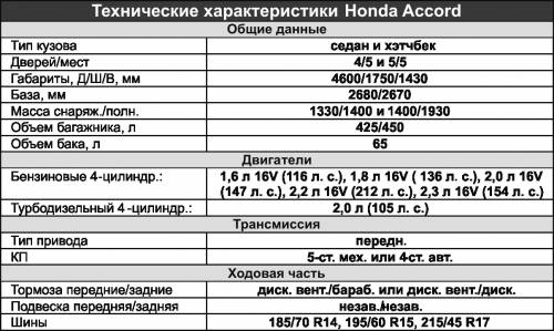 На наших дорогах подвеска зарекомендовала себя надежной. Втулки стабилизаторов поперечной устойчивости могут «выходить» около 60 тыс. км, стойки стабилизатора – до 100 тыс. км, а шаровые опоры и сайлент-блоки рычагов – и того больше. Но обслуживание подвески обходится недешево – передние верхние рычаги предлагаются только в сборе с «шаровыми» и сайлент-блоками (фирменная запчасть – 500$.). В сборе также поставляются пять рычагов (одна сторона) задней «многорычажки» (фирменные запчасти – от 100-150$, работа – 18$.). Способствует активному драйву и «острое» рулевое управление с ГУР, изменяющим в зависимости от скорости движения степень усиления. Особенность рулевого – оно неразборное, и тяги в нем заменить нельзя. Хотя, как утверждают механики, проблемы с этим узлом Accord возникают редко.