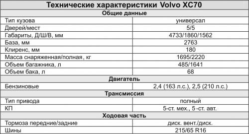 Гамма силовых агрегатов представлена двумя мощными современными двигателями. Первый – 2,5 T – однорядный пятицилиндровый турбированный бензиновый двигатель с рабочим объемом 2,5 литра мощностью 210 л.с., он обладает сбалансированными характеристиками и отличным откликом. Этот двигатель крайне редко встречается на дорогах нашей республики. Практически все ХС70, эксплуатируемые в Беларуси, оснащены двигателем объемом 2,4 литра мощностью 163 л.с. с непосредственным впрыском. Современная конструкция с технологией непосредственного впрыска Common Rail и изменяемой геометрией турбины обеспечивают быстрый отклик, исключительную мягкость работы, великолепную тягу и, что не менее важно, превосходную топливную экономичность. В базовой комплектации на автомобиль устанавливали механическую коробку передач, но на рынке подержанных автомобилей очень часто встречаются экземпляры, оснащенные АКП Geatronic. В общем, Volvo XC70 вполне подготовлен к плохим дорожным условиям, но из-за длинных колесной базы и свесов его геометрическая проходимость заметно ограничена.