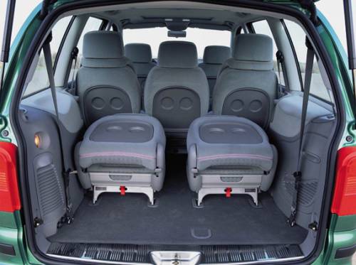 редние и задние сиденья можно сложить или снять. При этом образуется просторный отсек для багажа. Высота салона такова, что по нему можно свободно перемещаться, только слегка пригнувшись. Сиденья установлены выше, чем в обычных автомобилях, между передними и средними есть проход.