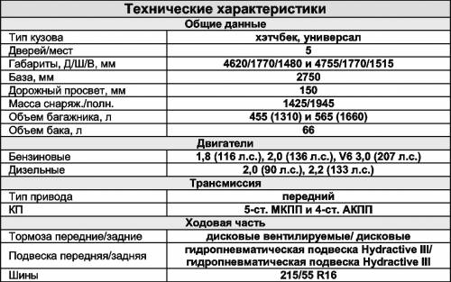 Бензиновые моторы представлены четырехцилиндровыми 1,8 л (117 л.с.) и 2,0 л (136 л.с.), а также 2,0 HPi мощностью 143 л.с., созданным, между прочим, с использованием лицензионной технологии непосредственного впрыска GDI (разработка Mitsubishi). Еще есть три дизеля: 1,6 HDi (110 л.с.), 2,0 HDi (109 л.с.), 2,2 HDi (136 л.с.).