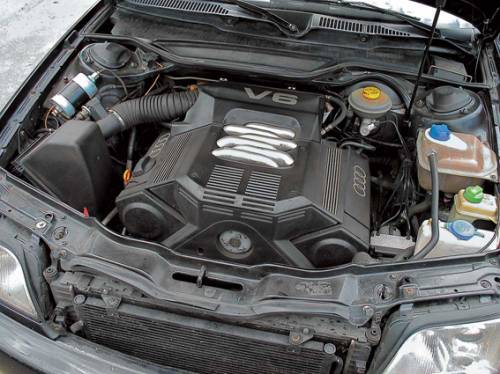 По утверждению мотористов, ресурс двигателей А6 quattro – 250–500 тыс. км (в зависимости от типа силового агрегата). В 4-цилиндровом моторе объемом 2,0 л при пробеге около 200 тыс. км может выйти из строя расходомер воздуха или потенциометр дроссельной заслонки. При больших пробегах в 6-цилиндровых двигателях объемом 2,6 л и 2,8 л приходят в негодность гидроопоры двигателя, а также может подтекать масло из-под прокладок головок блоков цилиндров. На 2,6-литровом моторе нередко «вылетает» датчик температуры охлаждающей жидкости. В агрегатах V6 при замене ремня ГРМ спустя 100 тыс. км (указан срок для оригинальной детали) желательно поставить также новый водяной насос – он приводится ремнем и в среднем выхаживает схожий ресурс – 100–130 тыс. км.