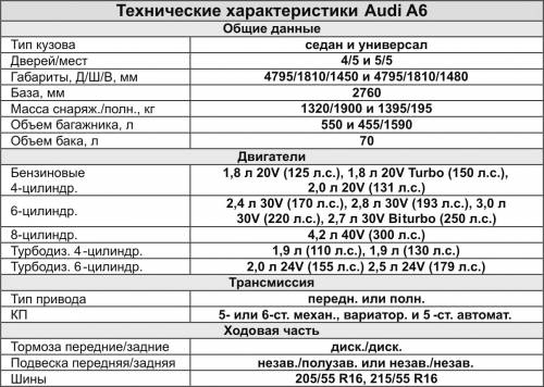 Audi А6 второго поколения широко представлена на вторичном рынке. Даже подержанные экземпляры могут порадовать владельца отличными ездовыми характеристиками, высоким уровнем комфорта и качеством изготовления. Чтобы в полной мере ощутить достоинства «шестерки», рекомендуем остановить выбор на версии quattro с любым из моторов V6.