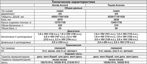 Обе модели – Accord и Avensis – представлены 4-дверными седанами и 5-дверными лифтбеками. Правда, у Toyota больше выбор модификаций – у нее есть еще и 5-дверный универсал. Вместе с тем наибольшее распространение у нас получили седаны, поэтому мы сравним модели именно с таким типом кузова.