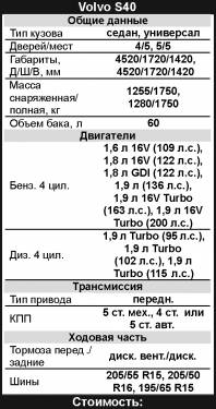 S40 покупали люди с высоким статусом, имеющие в своем распоряжении и другие автомобили. Поэтому не редкость десятилетние S40 с пробегом до 100 тыс. км. Правда, встречаются и «поношенные» экземпляры, сменившие нескольких владельцев, – обслуживают их у гаражных мастеров, благо несложная конструкция это позволяет.