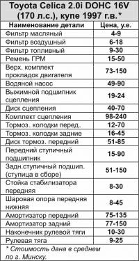 И немного о ценах. То небольшое количество (от числа эксплуатируемых в Беларуси Celica) автомобилей, выставленных на продажу, свидетельствует о том, что владельцы не спешат расставаться с этими «японками».