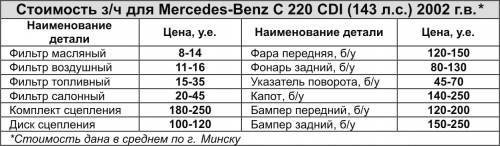 Наиболее популярные в Беларуси модификации С 200 CDi (2,1 л, 116 л.с.) и С 220 CDi (2,1 л, 143 л.с.) оснащены одинаковой «четверкой» цилиндров с разными настройками. Пятицилиндровый С 270 CDi (2,7 л, 170 л.с.) по динамике очень хорош – сравним с бензиновым С 240, но дорог в эксплуатации и ремонте.