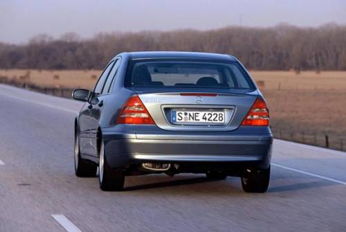 02.2004: Рестайлинг: изменились передняя и задняя оптика, бамперы, боковые молдинги, панель приборов, центральная консоль, рукоятки управления климатом; 16-дюймовые колеса в базовой комплектации. Изменены опоры передней подвески и сайлент-блоки рычагов задней, появилась рулевая рейка с клапаном параметрического управления (варьирует усилие в зависимости от скорости) и уменьшенным передаточным отношением. Появилась модификация C 55 AMG, двигатель V8 5,5 л, 367 л.с.