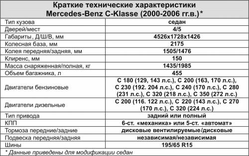 Mercedes-Benz C-Klasse покупают в основном из-за престижности марки и его ходовых качеств, вполне сопоставимых с качествами его основных конкурентов - Audi A4 и BMW 3-й серии. Однако престижность марки вовсе не доказывает ее надежность. Несмотря на молодость, автомобиль уже успел обрасти характерными болячками, количество которых с годами будет только расти. Хотя если посмотреть рейтинг TUV, то С-класс – модель далеко не самая капризная.