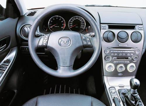 Интерьер у Mazda6 достаточно стилен и удобен. Независимо от типа кузова, в стандартную комплектацию “японки” входят обшитые кожей рулевое колесо и ручка переключения КПП. Обзорность хорошая, показания приборов четко читаются и комплектация весьма достойная. Однако у салона “шестерки” есть и свои недостатки: первый и самый главный – плохая шумоизоляция. Второй: со временем могут начаться поскрипывания деталей интерьера. Третий: запах сероводорода в салоне (у бензиновых версий). Все дело в не сложившихся дружеских отношениях между катализатором Mazda и качеством отечественного бензина с повышенным содержанием серы.