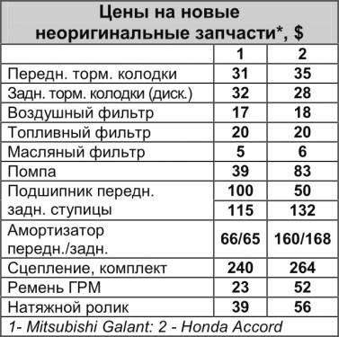 Недолго в Galant выхаживают и ступичные подшипники (около 50 тыс. км), причем они меняются вместе со ступицей (запчасть – около $ 100). В Accord они могут прослужить до 100 тыс. км, задний также меняется вместе со ступицей (около $ 100).