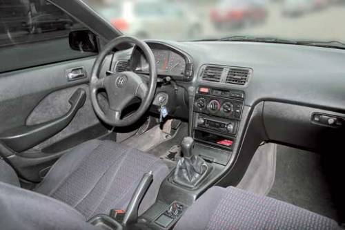 Салон Accord выглядит более спокойно и оформлен с большей претензией на солидность и комфорт, а об активном темпераменте машины говорят удобный 3-спицевый руль и низко установленные передние кресла