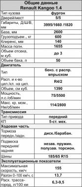 Первоначально предлагался 1,2-литровый бензиновый мотор в 59 л.с., но мощность его оказалась недостаточной, и выпуск этой версии был прекращен. Зато другой бензиновый «собрат», рабочим объемом 1,4 л и мощностью 75 л.с., стал достаточно популярным, в том числе и у нас в республике. На полноприводной версии Kangoo 4WD применяется 16-клапанный мотор в 1,6 л, развивающий