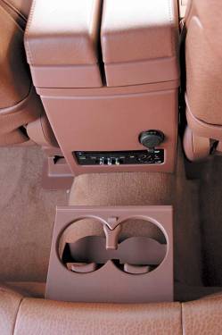 Этот автомобиль, как и полагается марке, имеет множество премиум-опций. Например, здесь есть кожаная отделка, камера заднего вида, информация с которой выводится на дисплей на центральной консоли, полный электропакет с приводом передних сидений (водительское с памятью на 2 положения), доводчик крышки багажника, дорогая аудиосистема Bose с CD-чейнджером на 6 дисков и сабвуфером, упрятанным в «запаске», на многих экземплярах есть откидывающийся потолочный дисплей. Версии первых годов выпуска (до 2004-го) оснащались привычным ключом зажигания, а после – интеллектуальным: брелок с ключом должен находиться в салоне, и тогда для запуска мотора достаточно провернуть заглушку, установленную на месте замка зажигания.