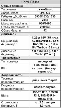 Большинство Fiesta, эксплуатируемых в Беларуси, оснащены механическими 5-ступенчатыми КП, а вот версии с автоматическим бесступенчатым вариатором встречаются редко. Причем работники сервиса рекомендуют не связываться с такими экземплярами, так как вариаторы Fiesta не отличаются большим ресурсом. В среднем он составляет около 150 тыс. км, а затем понадобится дорогостоящий ремонт – свыше $ 2 тыс., за который к тому же возьмутся не на всех СТО.