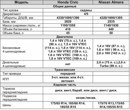 Судьбы этих двух «воинов» разные: Honda Civic с выразительной внешностью оказалась куда популярнее, чем Nissan Almera со скучным дизайном, который сыграл не последнюю роль в невысоком спросе на эту модель. Но ведь внешность – не главное. Поэтому мы решили взвесить в конкурентном противоборстве потребительские качества этих машин.
