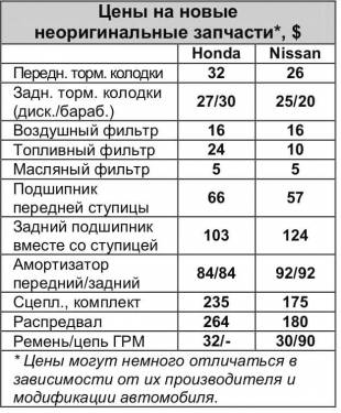 Вместе с тем ходовая Civic отличается большей долговечностью. «Резинки» стабилизатора поперечной устойчивости Civic служат 50–60 тыс. км, Almera – 30–40 тыс. км; сайлент-блоки передних рычагов – 150 и 80 тыс. км соответственно, наиболее нагруженных задних продольных тяг – 150 и 50–60 тыс. км. Шаровые опоры Almera в среднем ходят около 40 тыс. км, Civic – значительно дольше. Причем фирменные «шаровые» и сайлент-блоки Almera поставляются вместе с рычагами. Правда, можно подыскать неоригинальные детали, которые продаются отдельно. А вот такой же экономии при обслуживании задней подвески не получится – заменители не предлагаются. Практически все детали подвески Civic продаются отдельно (исключение составляет лишь верхняя шаровая опора, которая выполнена совместно с рычагом). Накладна в обоих автомобилях и замена задних подшипников – они поставляются только вместе со ступицами.