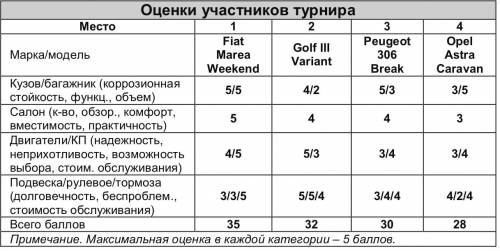 Третью позицию занял Peugeot 306 Break – 31 балл, а последнюю – Astra Caravan (28 балов). Несмотря на то, что багажник этого «немца» самый большой, а грузоподъемность – одна из самых высоких, «галерка» у Astra Caravan самая маленькая. Создатели пожертвовали ею, сделав вместительнее багажное отделение – 500/1630 л. Но низкое качество исполнения, неважные показатели долговечности и подверженность коррозии, к сожалению, свели на нет эти преимущества.