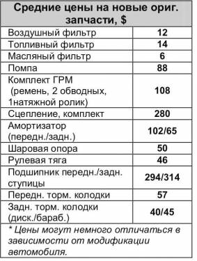 Чаще всего (в среднем через 30–40 тыс. км) при езде по нашим дорогам приходится менять втулки стабилизатора поперечной устойчивости (запчасть – $ 8 за 2 шт.), стойки держатся чуть дольше – 50–60 тыс. км (запчасть – $ 53 за 2 шт.). Шаровые опоры и сайлент-блоки выхаживают около 100 тыс. км и меняются отдельно от передних рычагов. Долго служат и «резинки» задней балки. А вот в случае выхода из строя подшипников готовьтесь к большим растратам – они меняются вместе со ступицами. Чаще приходят в негодность передние подшипники – оригинальная запчасть стоит $ 294.