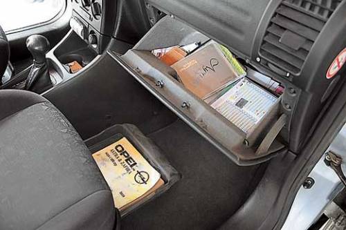 В салоне Zafira много подстаканников, под пассажирским сиденьем – выдвижной ящик, на картах дверей и сбоку от передних сидений – удобные карманы, спрофилированные для бутылок
