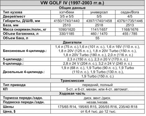 Golf IV нельзя назвать ненадежной или неудачной машиной, но до идеала она все-таки не дотянула. Перечень и частота возникновения неисправностей у него не больше, чем средний показатель у конкурентов, но и не меньше. Автомобиль дороговат. Подержанные покупают те, кто прежде считает деньги, а уж потом думает об имидже. И здесь Golf IV вряд ли станет лидером сегмента – среди машин с двигателями популярного в классе объема 1,6 л немало достойных предложений. Так что, может, стоит решиться еще на один шаг - Golf V.