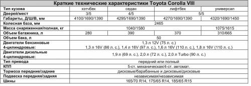 Чаще всего у нас встречаются Corolla, оснащенные бензиновыми моторами объемом 1,3 л и 1,6 л, а среди пострестайлинговых версий – с двигателями объемом 1,4 л (этот агрегат заменил 1,3-литровый) и 1,6 л. 1,3-литровый 12-клапанник, оборудованный карбюраторной системой питания, и дизельные версии встречаются редко.