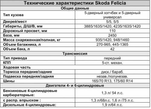 В1991 году компания Skoda вошла в состав концерна Volkswagen, что обеспечило ее продукции высокий уровень качества при вполне приемлемой стоимости. С этого времени чешские автомобили постепенно начали обретать популярность. Felicia стала первой чешско-немецкой моделью, а 7-летний срок ее производства уже позволяет обобщить опыт эксплуатации этого автомобиля, относящегося к европейскому сегменту рынка В.