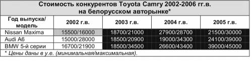Toyota Camry V - это автомобиль для спокойного водителя, ценящего комфорт и безопасность. Немного безликий, не очень популярный (его конкуренты этих годов мелькают на наших улицах гораздо чаще), но вместе с тем обладающий чувством собственного достоинства.