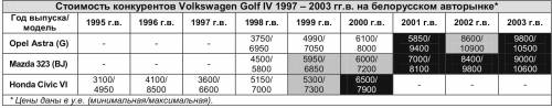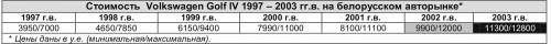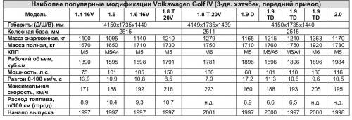 Если вам нужен автомобиль для повседневной эксплуатации, то обратите внимание на VW Golf IV. Надежность, высокая ремонтопригодность, широкая гамма модификаций несомненно склонят вас к этому выбору. Не рекомендуем брать спортивные версии с пробегом по РБ, обычно они уже сильно изношены. При покупке турбоверсий обязательна диагностика турбокомпрессора. Самым популярным представителем Golf IV на нашем рынке является 1,6-литровый хэтчбек и турбодизель с объемом силового агрегата 1,9 литра.
