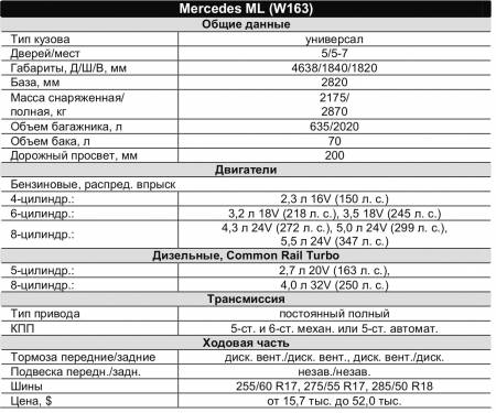 Однако эта модель продавалась в количестве 100 тыс. в год – тем более что рестайлинг 2001 года “подправил” недоработки технологов, стилистов и сборщиков. Кроме “американцев”, на нашем рынке встречаются экземпляры, собранные в Австрии. Эти машины отличаются продолговатой горизонтальной подштамповкой под номерной знак, световыми приборами и отделкой салона. Но в целом все внедорожники собирали из одинаковых узлов, поэтому надежность и долговечность “родственников” из разных стран одинаковы. В Беларуси есть Mercedes ML, завезенные из-за границы уже с пробегом и купленные у официального дилера.