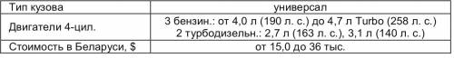Это внедорожник с несущим кузовом. Клиренс – 210 мм, трансмиссия – с понижающей передачей и блокируемым центральным “дифом”. На высоте не только проходимость, комфортабельность Grand Cherokee одна из лучших. На асфальте машина динамична (скорость – до 200 км/ч), хотя тяжелый кузов при маневрах раскачивается на мягкой подвеске. Интересно, что у “американца” есть общий с Mercedes ML дизель – экономичный 2,7-литровый турбированный агрегат. Машина щедро оснащена даже в стандартной комплектации. В ремонте она относительно недорогая, зато на техобслуживание ее придется гонять чаще, чем конкурентов.