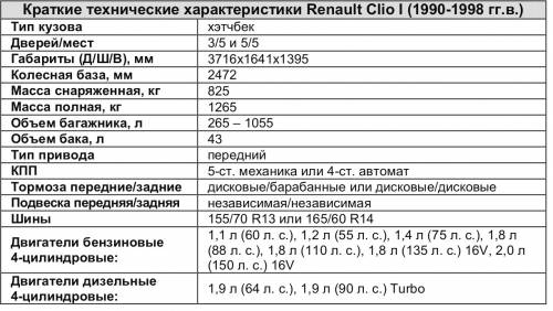 Renault Clio 1990 – 1998 гг.в. покупают чаще всего молодые семьи, живущие в городе. Благодаря небольшим габаритам, этот автомобиль сумеет припарковаться на забитых машинами парковках; у него широкая гамма экономичных двигателей; Clio отличается комфортабельной подвеской; цены на «француженку» приемлемые, цены на з/ч не «кусаются» и еще одно немаловажное достоинство – просторный багажник.