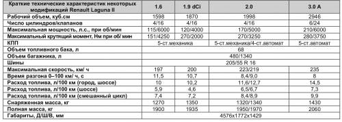 У «первой» «Лагуны» широкий выбор двигателей. Из пяти бензиновых и трех дизельных моторов можно выбрать наиболее подходящий вариант. Но если смотреть с точки зрения стоимости запчастей и «неубиваемости», то выбирать стоит либо дизели, либо шестицилиндровые двигатели. И хотя моторесурс двигателей до капитального ремонта составляет 300.000 тысяч километров, «сыпаться» силовой агрегат начинает уже после двухсот тысяч. В первую очередь все двигатели Laguna боятся перегрева. При этом металл поршневых колец становится мягким и кольца быстрее изнашиваются. Причиной перегрева в основном является загрязнение радиатора охлаждения и негерметичность резиновых патрубков, которые со временем трескаются, и антифриз течет из-за ослабевших металлических хомутов. При покупке автомобиля не поленитесь заглянуть под капот – если видны потеки масла из-под сальников, то, скорее всего, двигатель неоднократно «кипел». Приобретая Laguna с пробегом более двухсот тысяч, было бы неплохо устроить полную ревизию системы охлаждения – поменять радиатор и водяной насос (стоимость насоса 25-35 у.е.). Еще одна хроническая болезнь бензиновых двигателей – со временем они нуждаются в регулировке тепловых зазоров клапанов, об этом свидетельствует повышение шумности работы двигателя. Обязательно поинтересуйтесь у продавца, когда последний раз менялся ремень ГРМ (менять ремень вместе с натяжительным роликом необходимо каждые 60 тысяч километров).