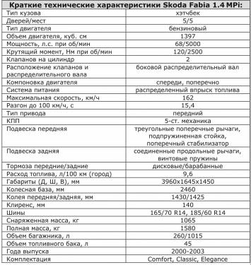 Если вкратце подытожить вышеизложенное, то Skoda Fabia – это хорошая возможность получить машину немецкого качества по разумной цене. Автомобиль с двигателем 1,4 MPI - преимущественно для женщин. Мужчины, предпочитающие спортивный стиль вождения, должны обратить свое внимание на более мощные версии.