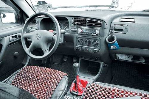 Традиционно для автомобилей VW 90-х годов выпуска щиток приборов в недорогих модификациях вместо тахометра оснащен большими стрелочными часами. На одометре конструкторы решили не экономить – все версии имеют электронный счетчик пробега. Хотя при покупке не стоит обольщаться и полностью доверять показаниям прибора – отечественные умельцы научились «скручивать» и его.